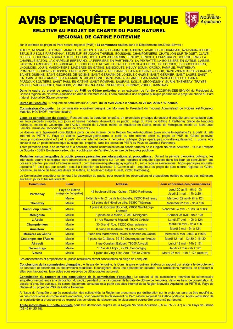 Les habitants sont invités à donner leur avis du 20 avril au 26 mai 2026 sur le registre dématérialisé ou lors des permanences du Commissaire enquêteur.